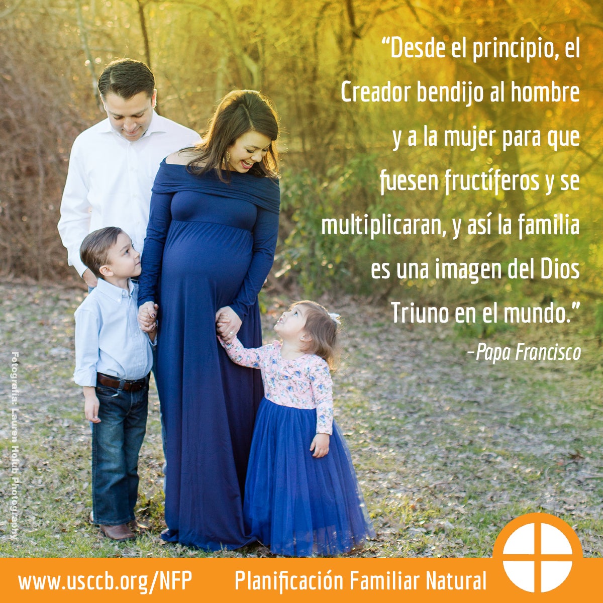 "Desde el principio, el creador bendijo al hombre y a la mujer para que fuesen fructiferos y se multiplicaran, y asi la familia es una imagen del Dios Triuno en el mundo." Papa Francisco