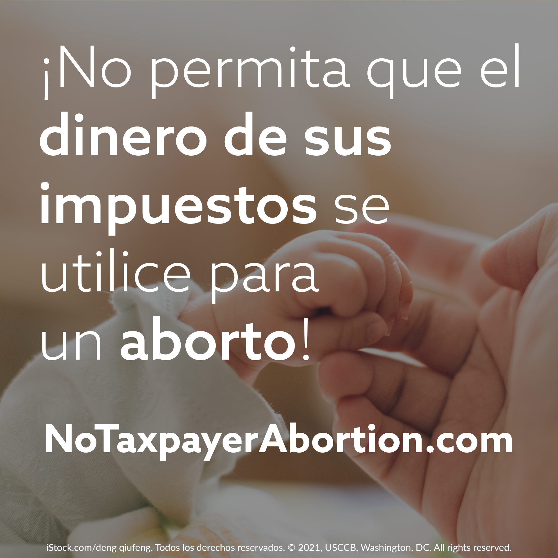 (Spanish) No Taxpayer Abortion graphic (baby's holding mom's hand)