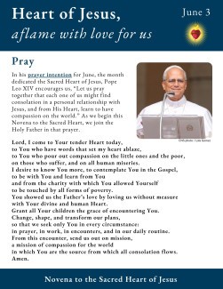 In his prayer intention for June, the month dedicated the Sacred Heart of Jesus, Pope Leo XIV encourages us, “Let us pray together that each one of us might find consolation in a personal relationship with Jesus, and from His Heart, learn to have compassion on the world.” As we begin this Novena to the Sacred Heart, we join the Holy Father in that prayer.