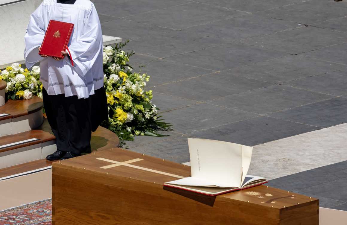 Pope Francis presides over the funeral Mass for Pope Benedict XVI in St. Peter's Square. It was the first time in more than 200 years that a pope celebrated the funeral of his predecessor.
