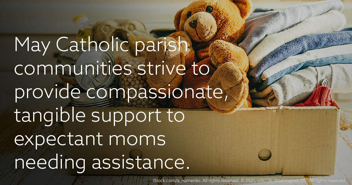Walking with Moms in Need Prayer Guide 2: May Catholic parish communities strive ot provide compassionate, tangible support to expectant moms needing assistance.